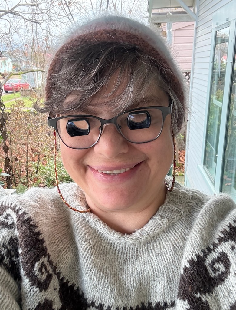 Over the course of a year, Angela's vision declined to the point where she could no longer read labels at the grocery store, see the card reader at checkout, identify her seat on an airplane, or read a paper book. As a knitter, a counselor who works on a computer, and a caretaker for her father, the losses were mounting.